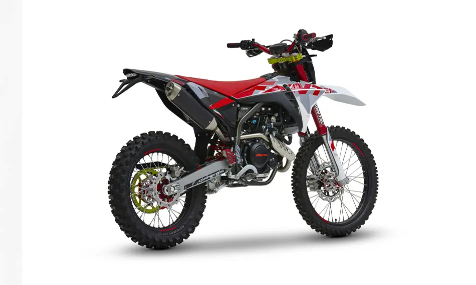 - Estética Fantic Racing con gráficos “Factory Feeling”, chasis CrMo con subchasis desmontable, en colores Blanco/Rojo o Negro/Amarillo.