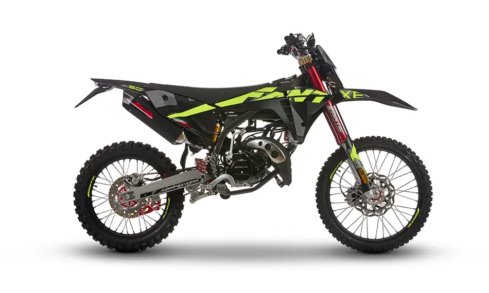 - Minarelli 2T de 49,7 cc, refrigeración líquida, escape Twin Fire en aluminio negro, carburador Dell’Orto.